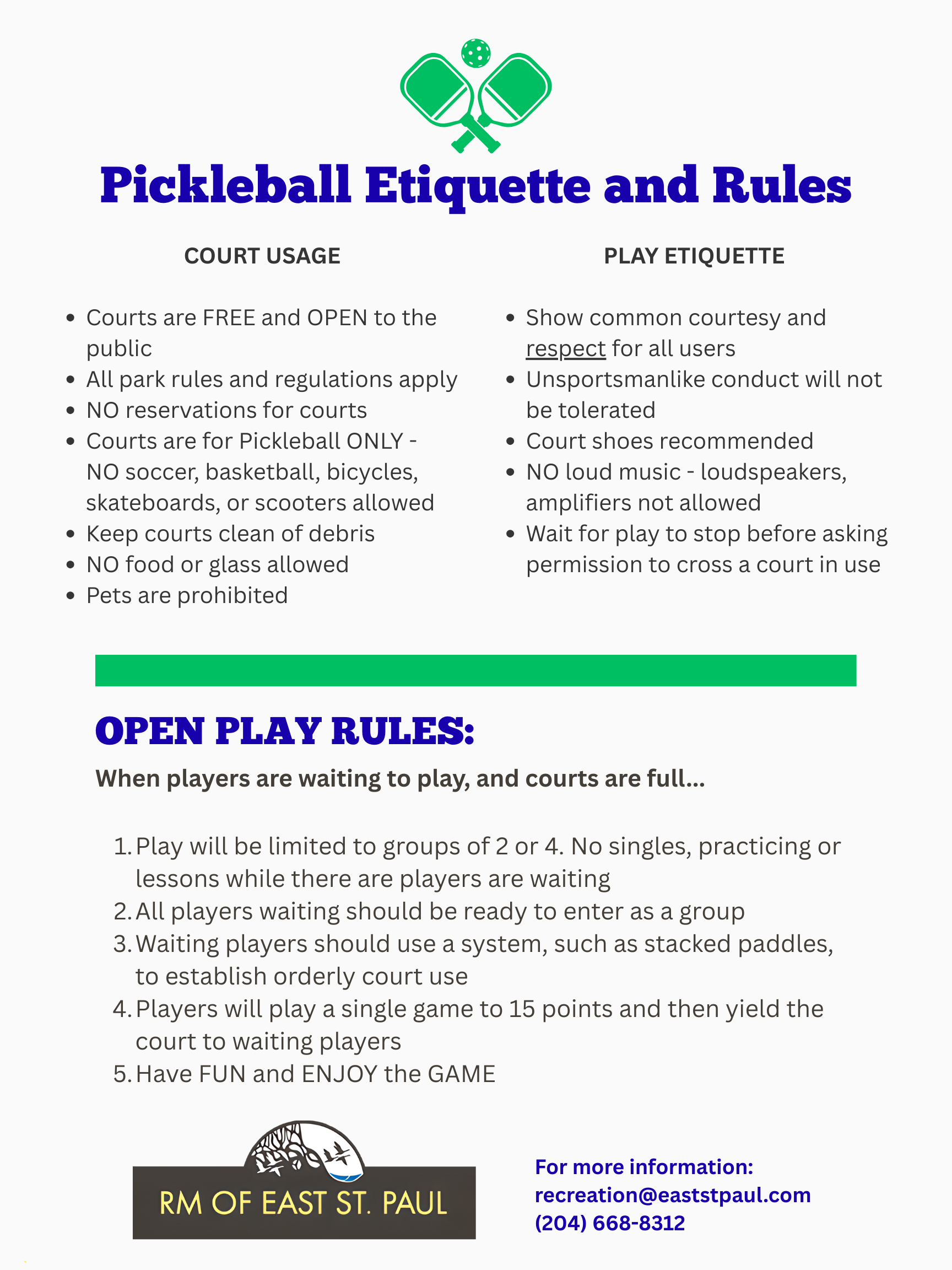 We are excited to announce that the outdoor pickleball courts beside the East St. Paul Arena are now open for the season!