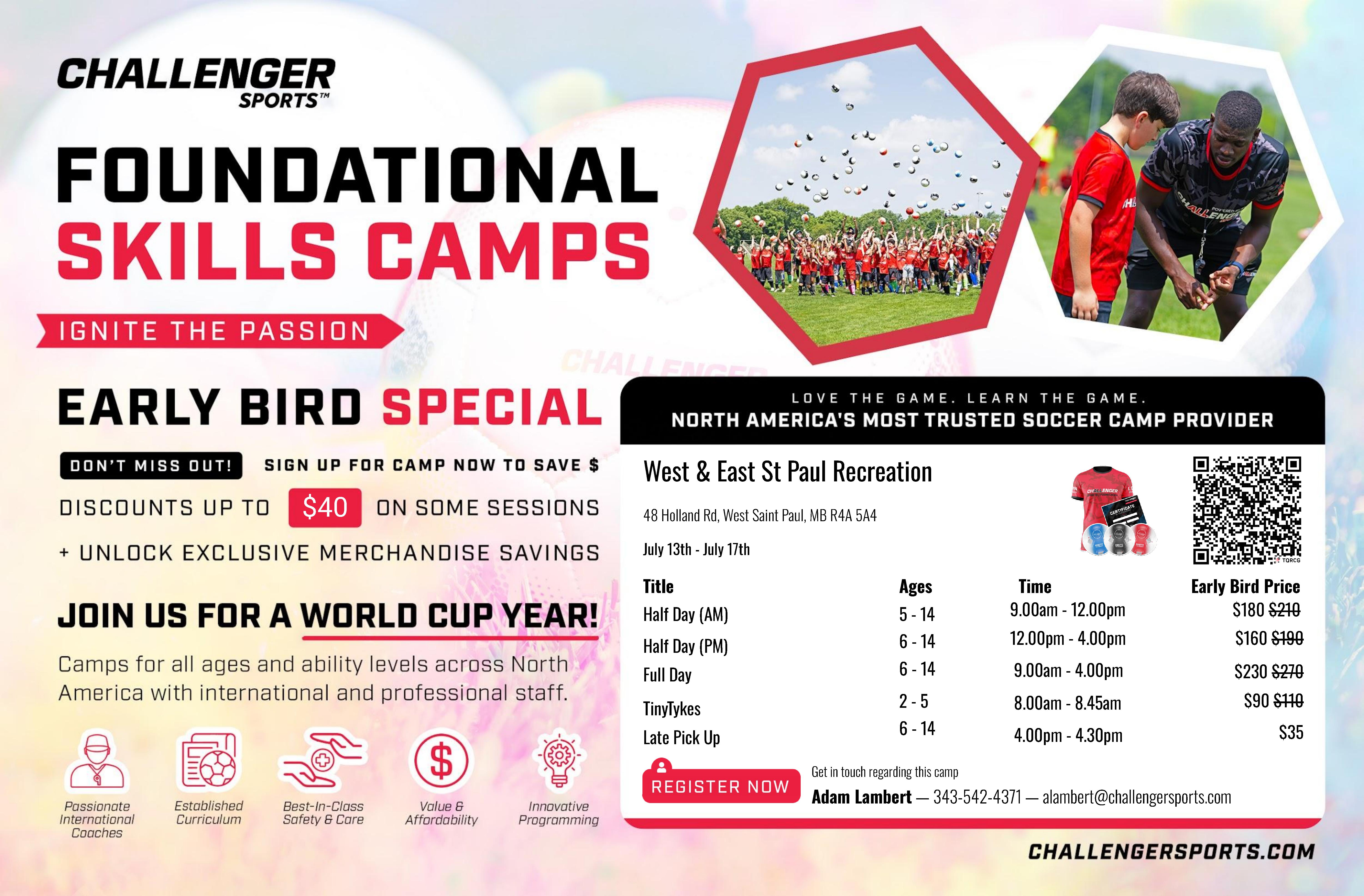 Challenger Sports is teaming up with East St. Paul & West St. Paul Recreation to deliver an exciting soccer camp this summer in West St Paul!